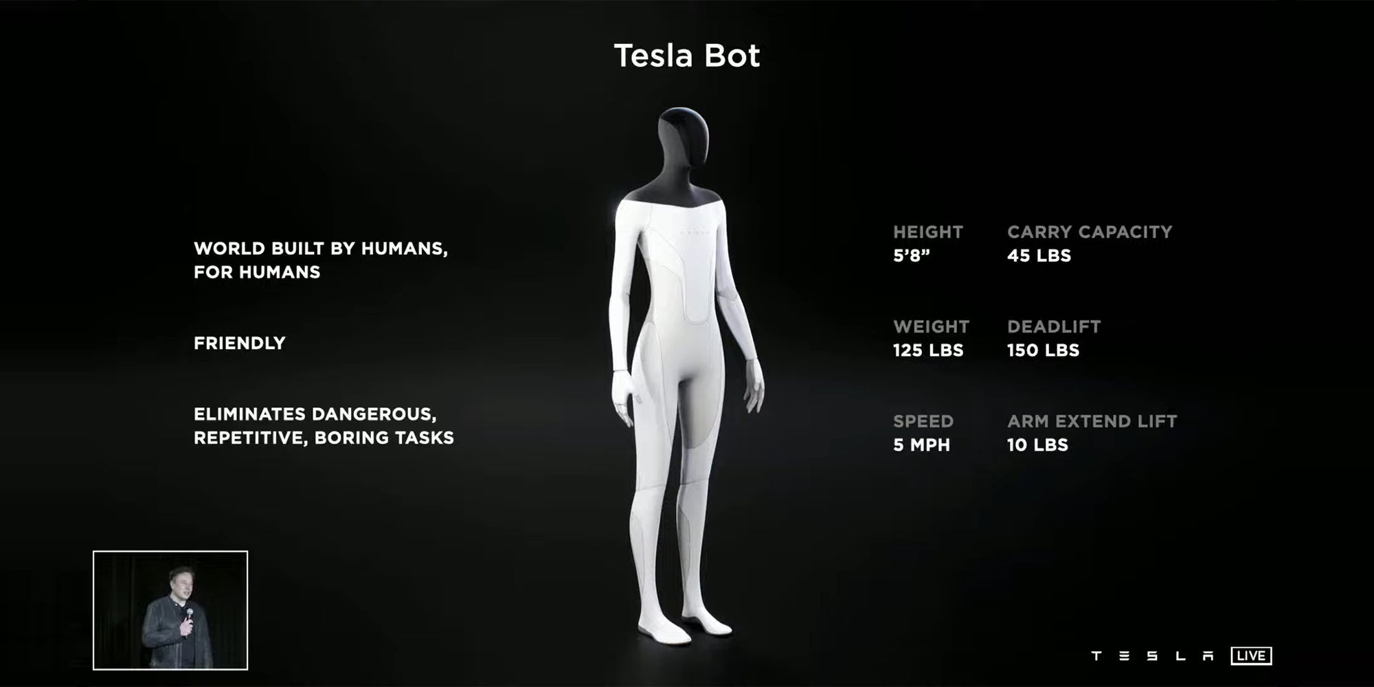 Aug 20, 2021 · musk unveiled the tesla bot, a 5 ft.